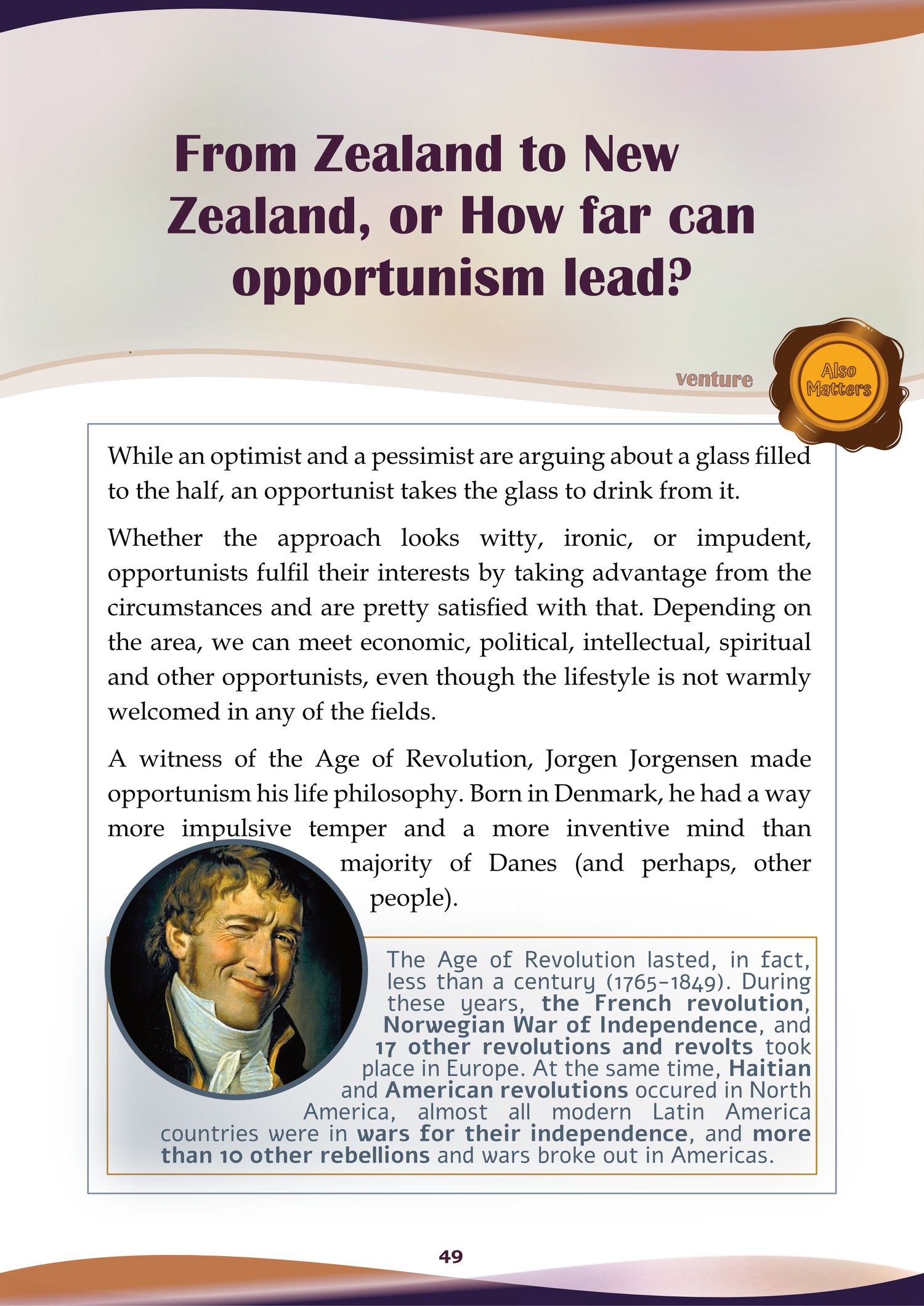 - scientific development, personal attitudes, life philosophy are discussed through real-life stories from the 16th-20th centuries